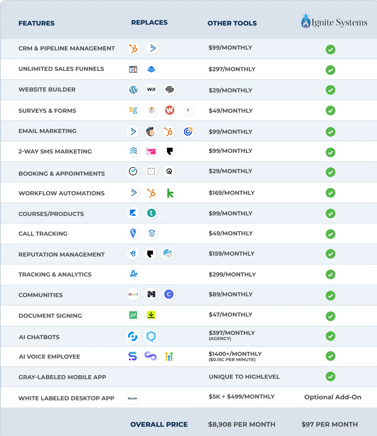 No! Ignite System's AI Voice + Chat software has superior features to Go High Levels AI Agents, and make a separate subscription for their AI Agents completely redundant and not required.